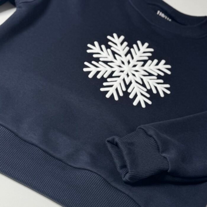 Naujiena! Iškili termo spauda. Atrodo lyg tikru sniegu padengta snaigė. Labai gražiai atrodo, puikiai skalbiasi ir nešiojasi.