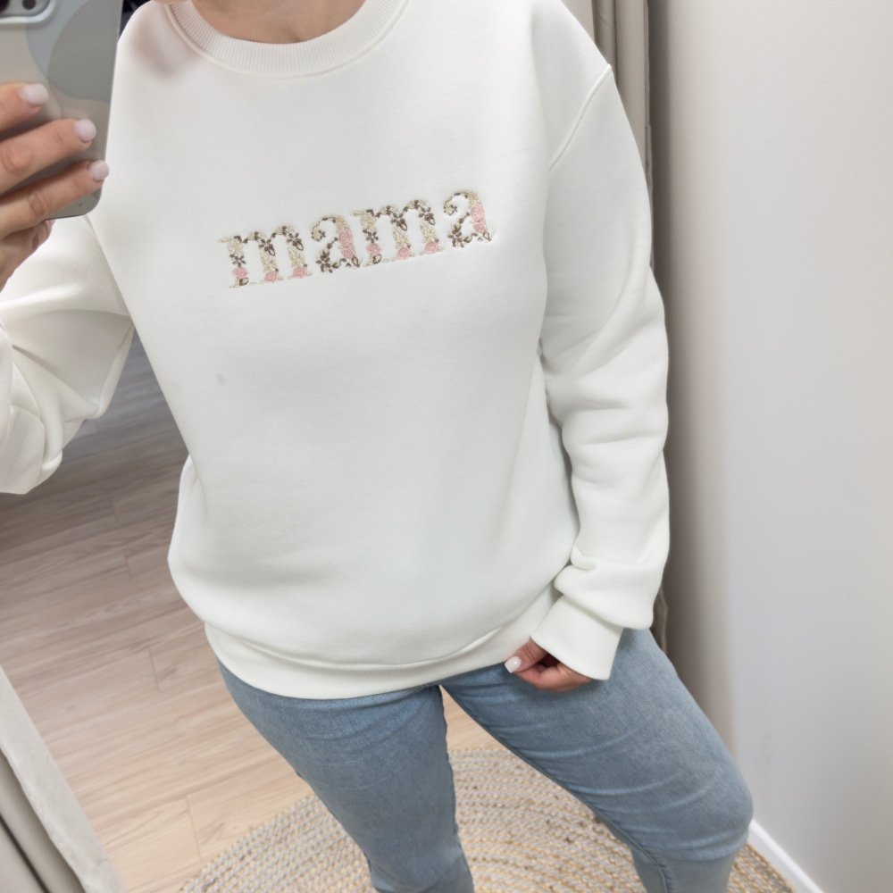 Pieno spalvos moteriškas džemperis su siuvinėtu MAMA užrašu. Išskirtinis mamos džemperis su siuvinėtu dizainu. Norite laisvesnio džemperio? Rekomenduoju imti dydžiu didesnį.