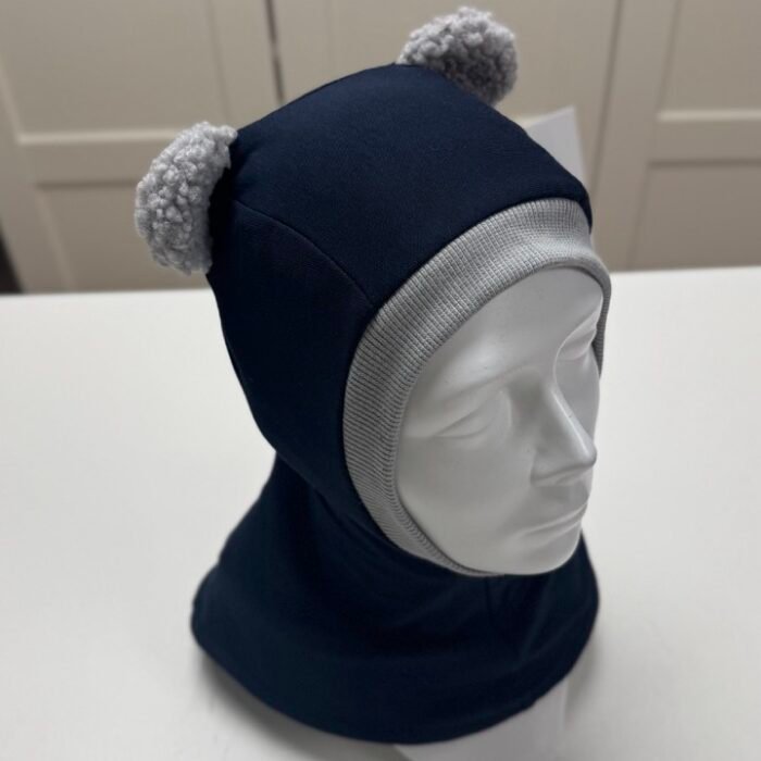 Šiltas šalmukas su ausytėmis. Dvigubas kilpinis trikotažas su pūkeliu. Puikiai tinkamas lietuviškai žiemai, šaltam rudeniui. Labiausiai pasiteisinęs šalmuko modelis, nes puikiai apgaubia galvytę, nesisuka aplink veidą, prailginta apatinė dalis.