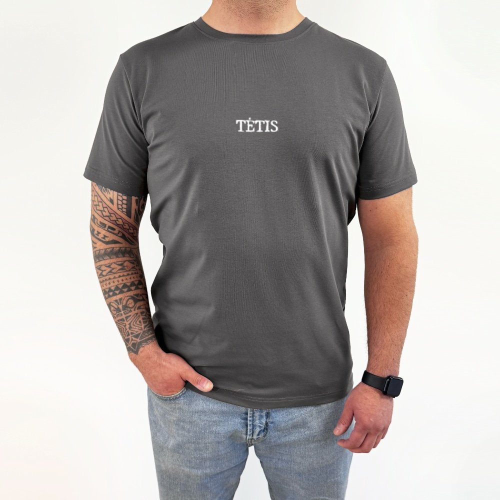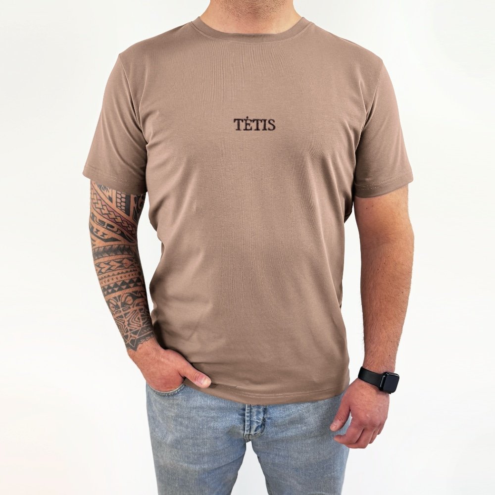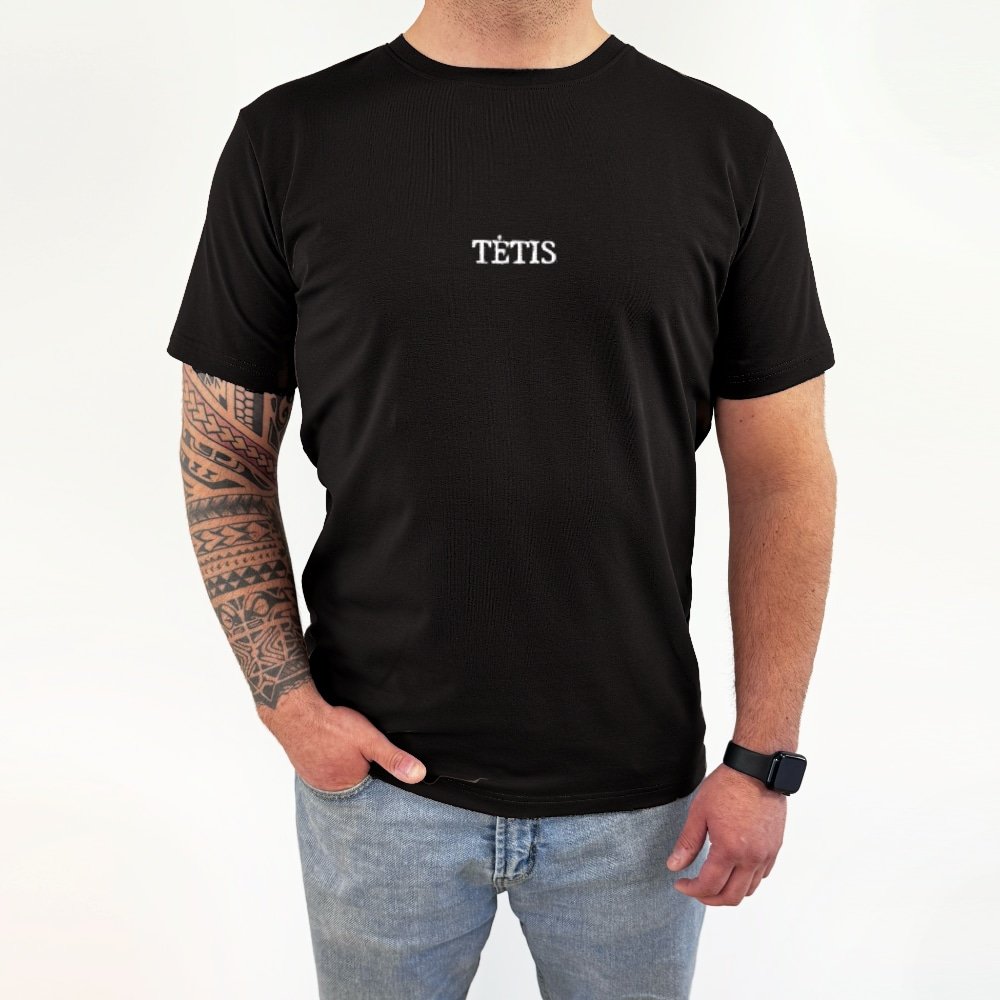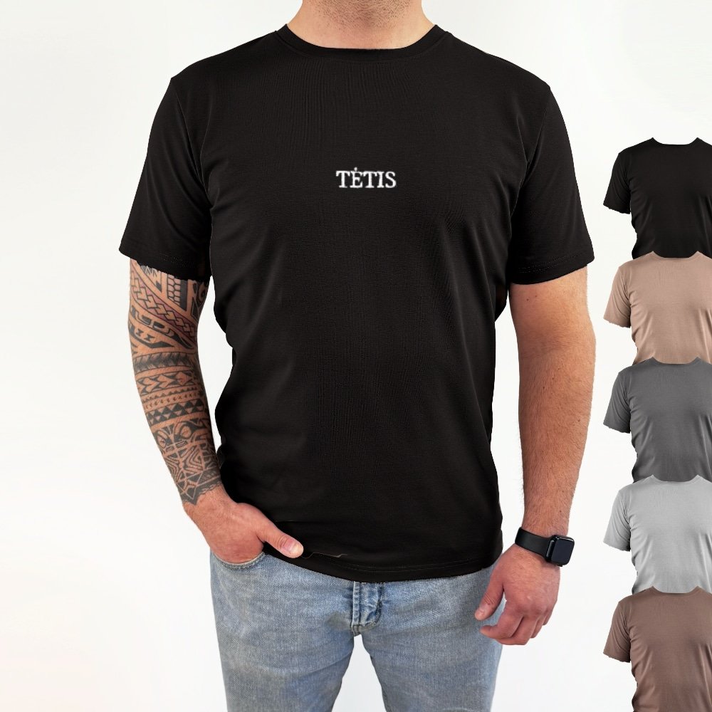 Išskirtinės kokybės vyriški marškinėliai TĖTIS trumpomis rankovėmis. Patogūs nešioti, gražiai laiko formą. Siuvinėtas užrašas turi subtilaus blizgesio ir iškilumo. Siuvinėjimas – ilgaamžis.